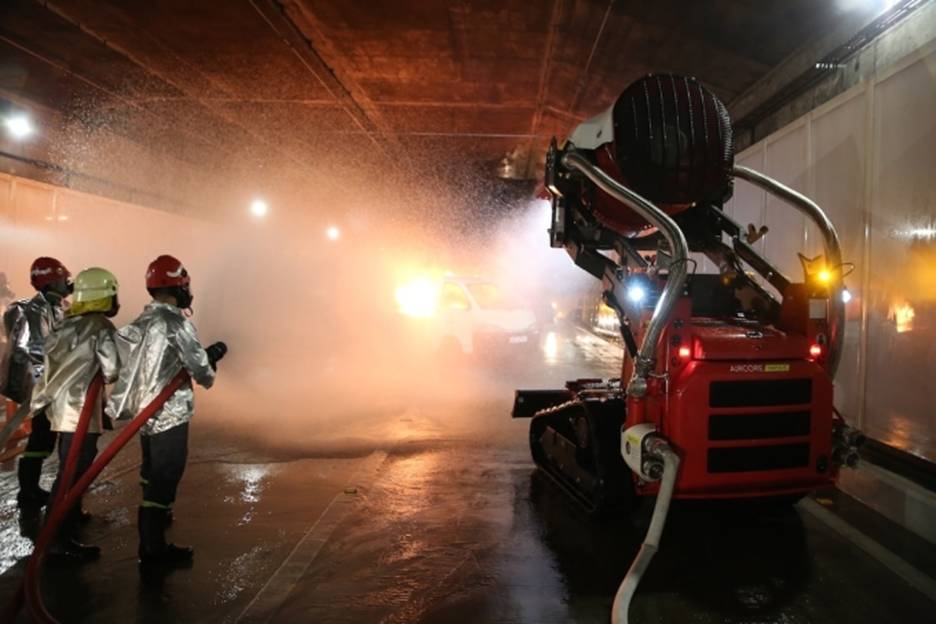 Robot diễn tập chữa cháy trong hầm Thủ Thiêm.